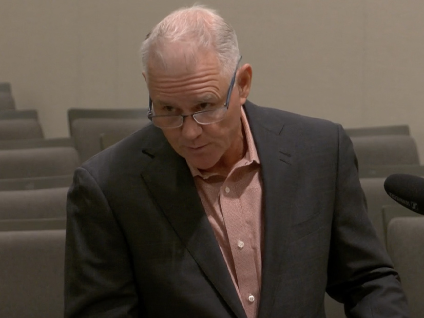 Scott Wetch, a lobbyist representing the California Coalition of Utility Employees and the California Association of Electrical Workers, speaks during a California Senate hearing on Aug. 6. | California Senate