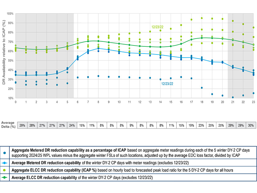 PJM presented analysis of demand response availability during the top five weather load days in 2022 and 2023, compared to the ELCC rating assumptions for the resource class. | PJM