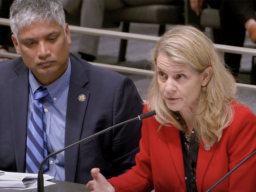 CPUC President Alice Reynolds, right, and CEC Vice Chair Siva Gunda participate in a California Senate Energy, Utilities and Communications Committee oversight hearing Aug. 6. | California Senate