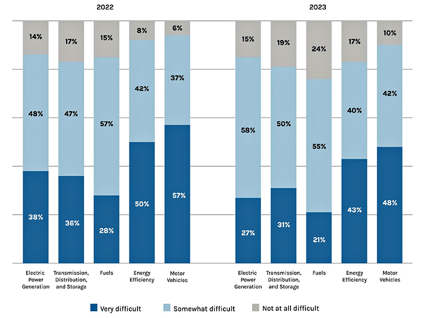 A U.S. Department of Energy chart shows the relative ease of hiring new employees reported in various energy sectors. | DOE