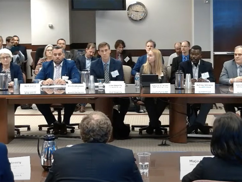 The first panel from FERC's interconnection workshop: Beth Garza, Arash Ghodsian, John Michael Hagerty, Natasha Henderson, Aubrey Johnson and David Mindham. | FERC