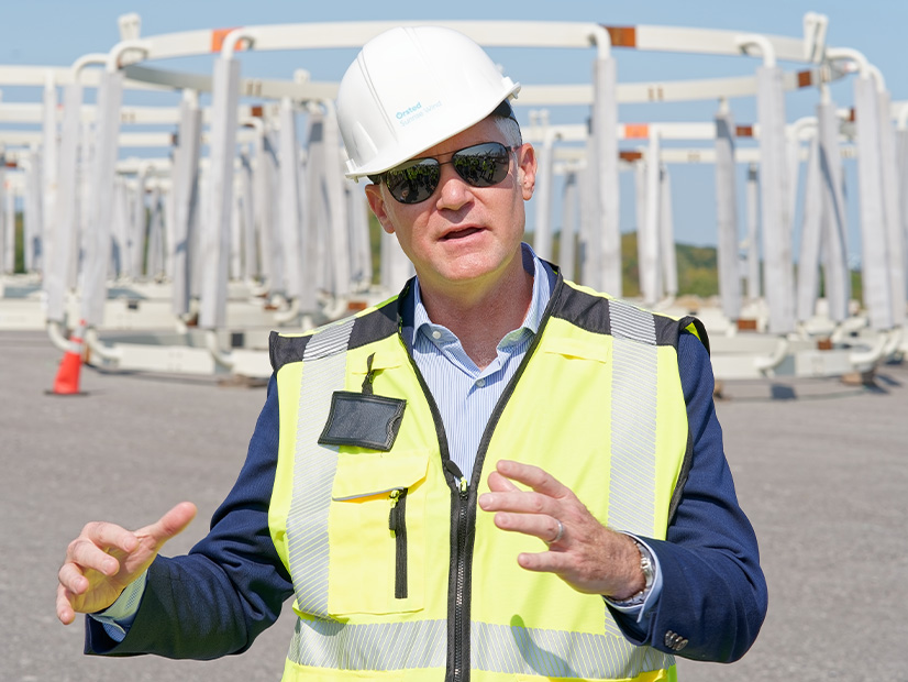 Ørsted Americas CEO David Hardy speaks Sept. 12 in Coeymans, N.Y., about progress on components for the company’s Sunrise Wind offshore wind project. | © RTO Insider LLC
