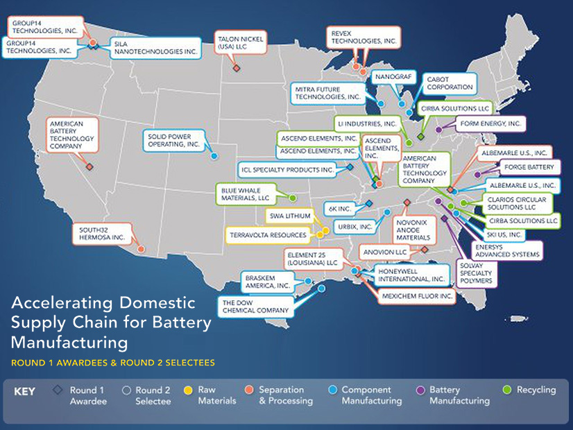 DOE has selected 25 battery supply chain projects to receive $3 billion in grants from the Infrastructure Investment and Jobs Act, according to an announcement.