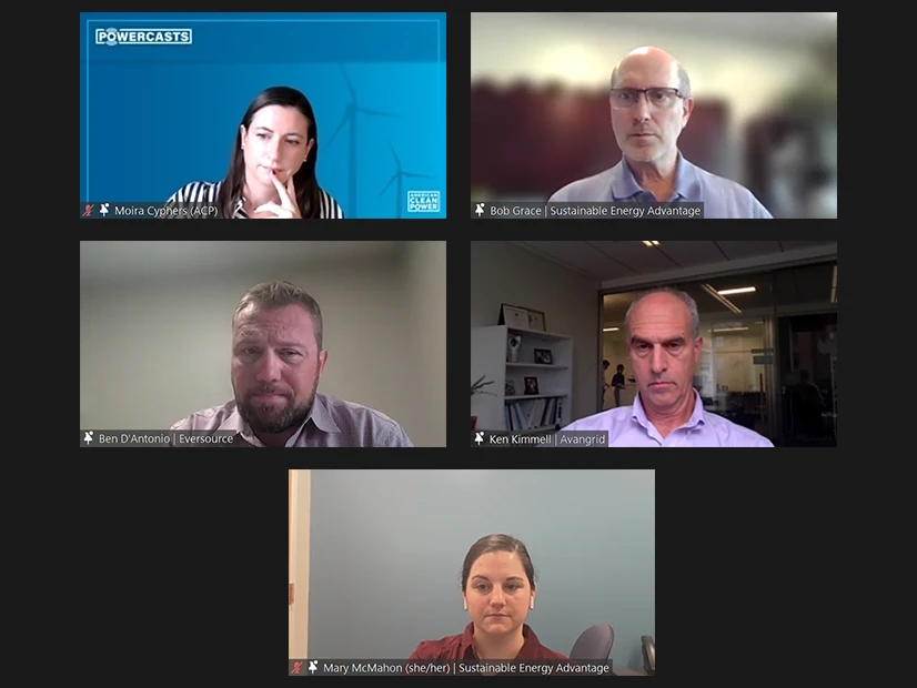 Clockwise from top left: Moira Cyphers, American Clean Power; Bob Grace, Sustainable Energy Advantage; Ken Kimmell, Avangrid; Mary McMahon, Sustainable Energy Advantage; and Ben D'Antonio, Eversource Energy | NECA