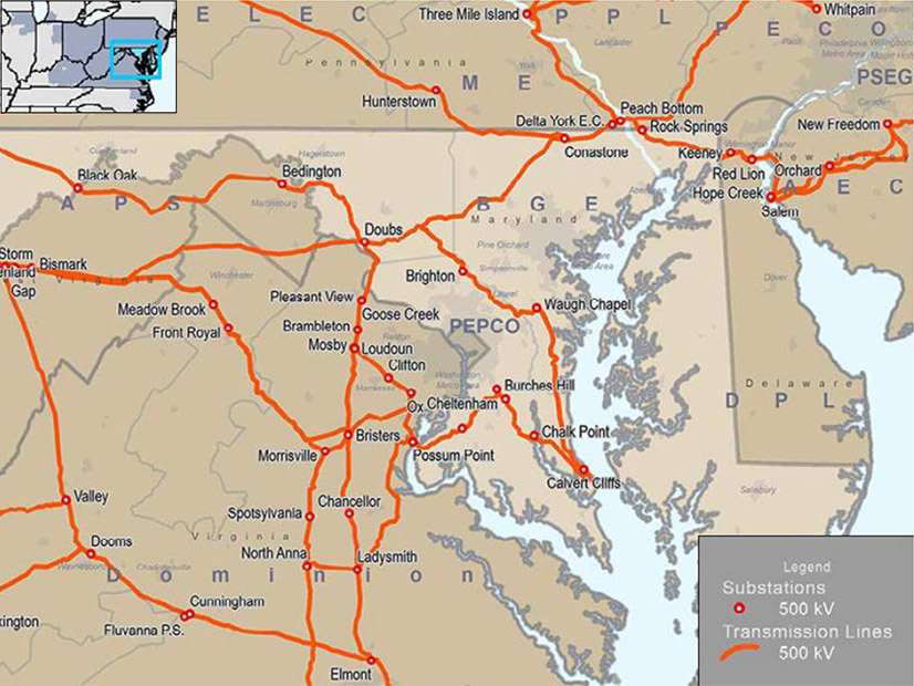Maryland's high-voltage transmission system: Access to high-voltage lines is limited in the central and eastern parts of the state, which has to import about five times more power than it generates. | PJM