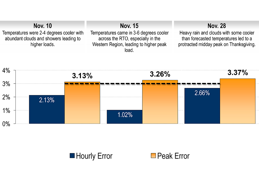 A PJM graphic details the factors driving underforecasting on three days in November. | PJM