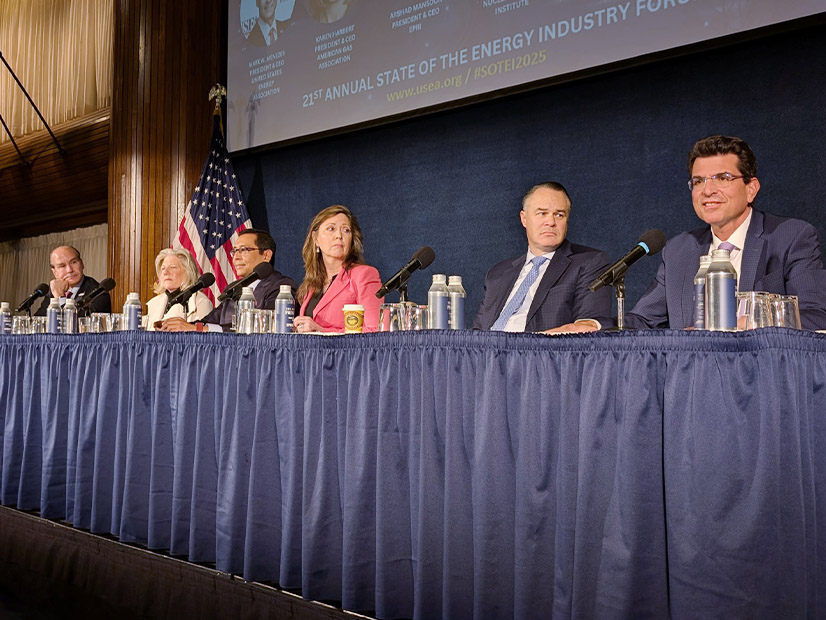 The opening panel at the USEA State of the Energy Industry Forum on Jan. 23 (from left): Mark Menezes, USEA; Karen Harbert, American Gas Association; Arshad Mansoor, EPRI; Maria Korsnick, NEI; Mike Sommers, API; and Jason Grumet, ACP. | © RTO Insider LLC