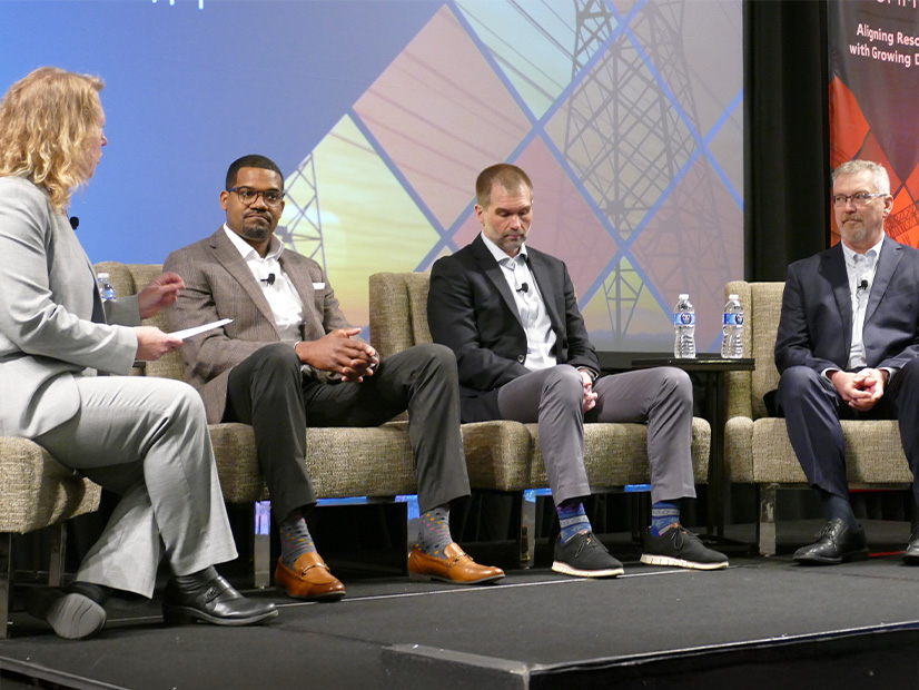 SPP director Irene Dimitry moderates a panel featuring (left to right) SPP's Antoine Lucas, PJM's Adam Keech and ERCOT's Woody Rickerson. | © RTO Insider LLC