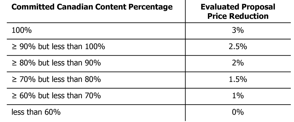 But in its March 26 presentation, IESO revised the incentive to a sliding scale, ranging from a 1% price reduction for using 60 to 70% Canadian supplies, to a 3% reduction for a 100% Canadian commitment.