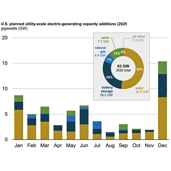 New solar, battery storage and onshore wind power generation totaled 11.7 GW in the third quarter of 2025, the American Clean Power Association reported.
