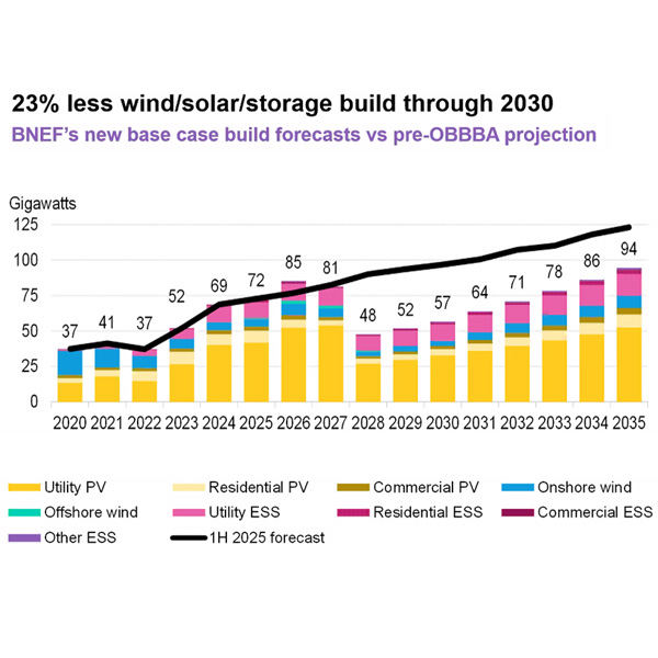 Construction of new wind, solar and energy storage facilities will decrease significantly over the next five years, a BloombergNEF analyst said in an presentation to the California Energy Commission.