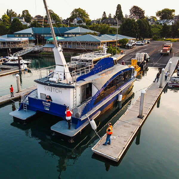 A hydrogen-fueled passenger ferry is awaiting U.S. Coast Guard approval before going through test runs in the bay off Bellingham, Wash.