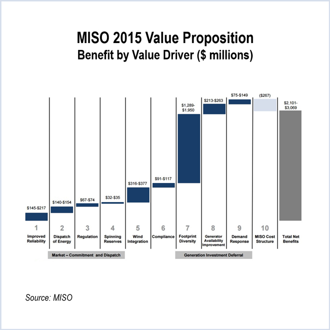 MISO provided members about $2.6 billion in economic benefits during 2015, according to the RTO’s most recent “value proposition” stud