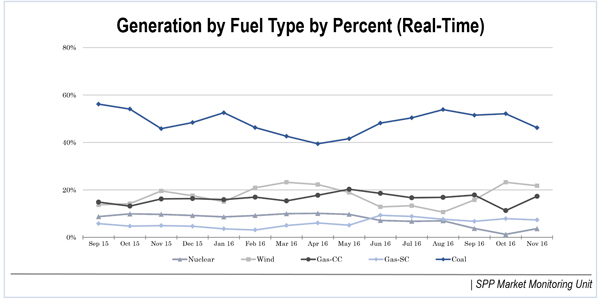 SPP set a new record for wind power generation Friday when the footprint cracked the 12,000-MW threshold for the first time while coal generation declined.