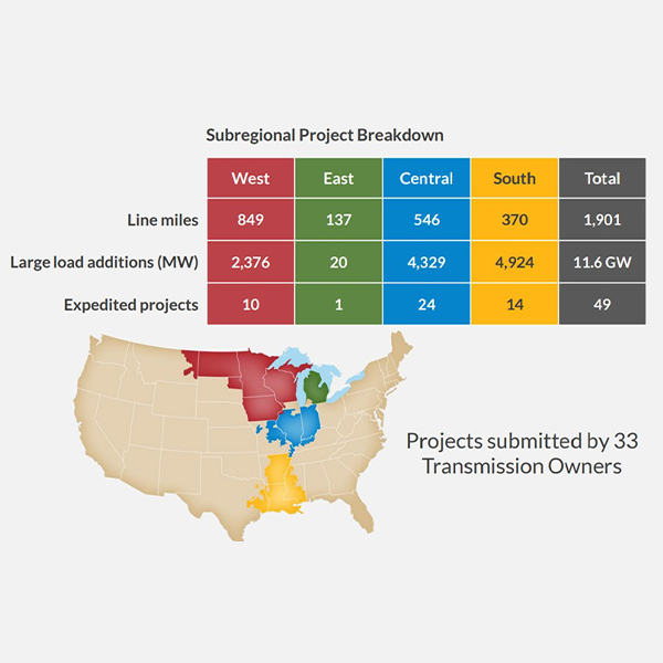 A MISO board committee advanced 432 projects from transmission owners at a cost of almost $12.3 billion under the RTO’s 2025 Transmission Expansion Plan.