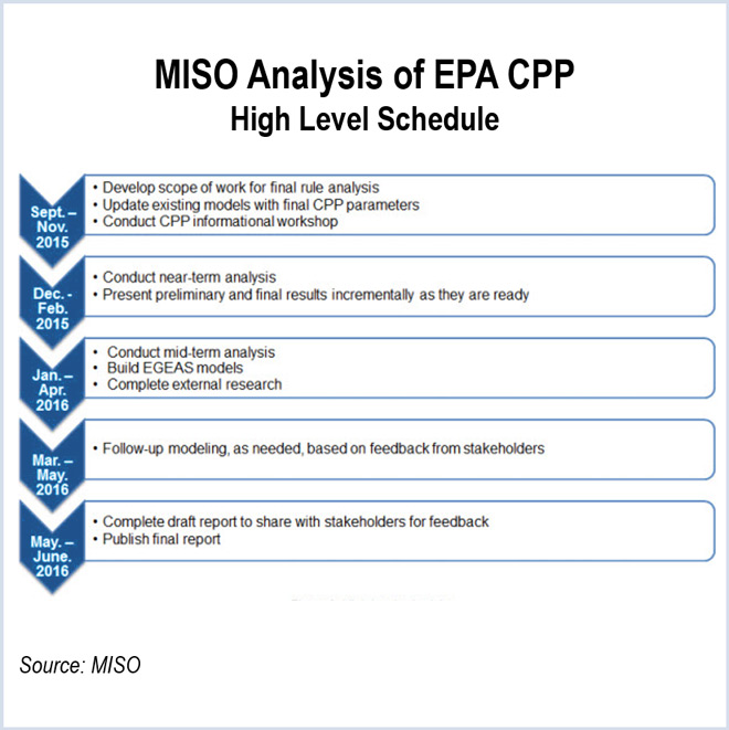 MISO released the final scope of studies it will conduct through mid-2016 to help the RTO’s 13 states evaluate their compliance options under EPA’s Clean Power Plan.