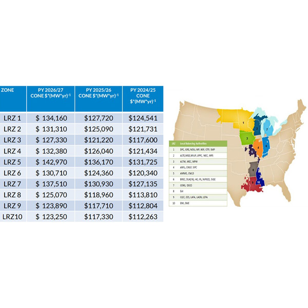 Inflation and higher borrowing costs pushed MISO’s cost of new entry up by about 5% heading into the 2026/27 planning year, but stakeholders are questioning MISO’s use of 2020 data in calculations in order to keep prices lower.