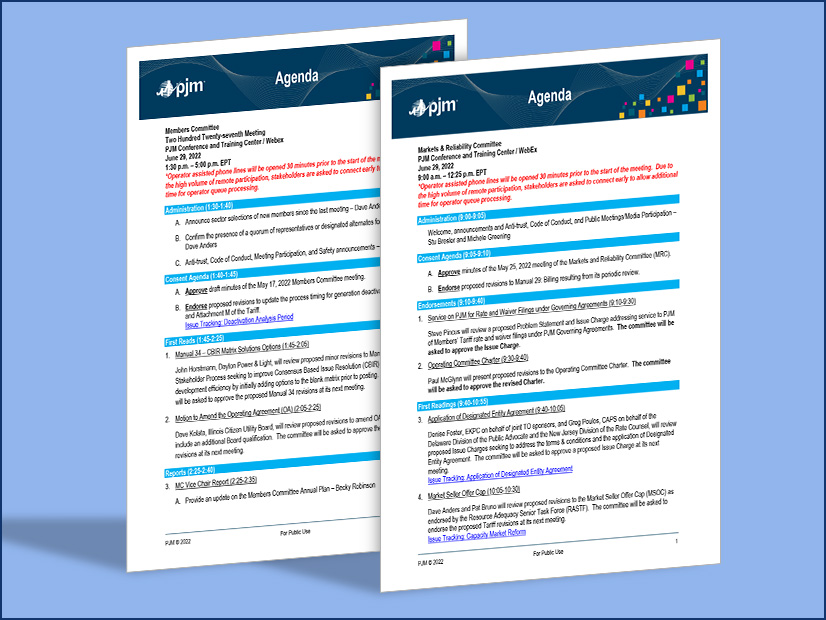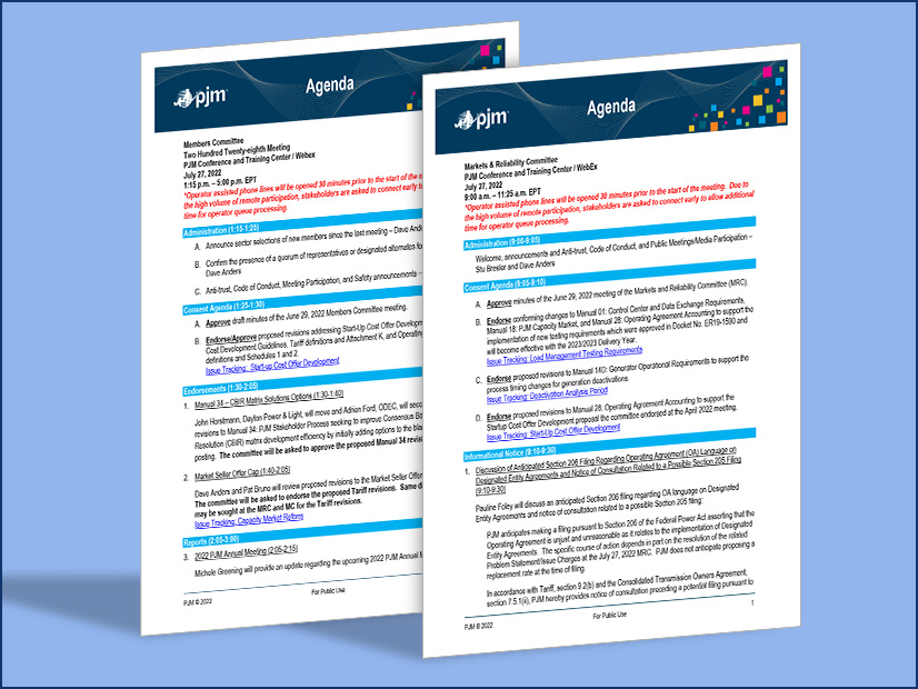 A summary of the agenda items scheduled to be brought to a vote at the PJM Markets and Reliability Committee and Members Committee meetings July 27, 2022.