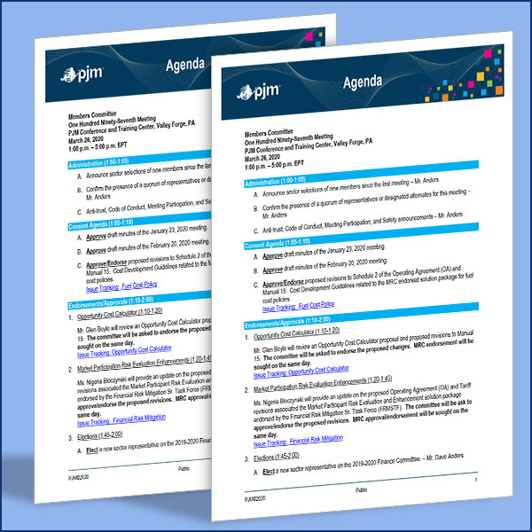 A preview of the items to be brought to a vote at Thursday's PJM Interconnection Markets and Reliability and Members committee meetings.