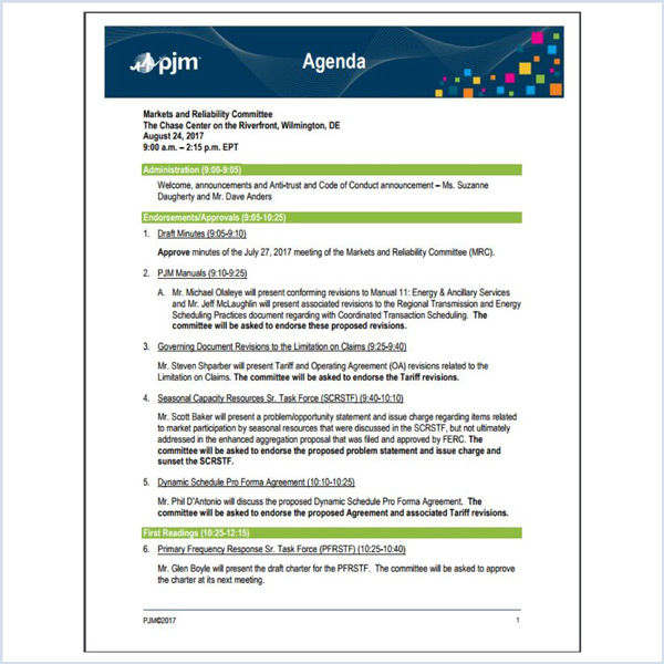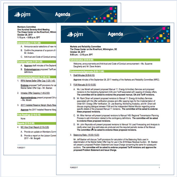 A summary of the issues scheduled to be brought to a vote at the PJM Markets and Reliability and Members committees on Oct. 26, 2017.