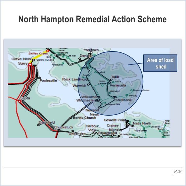 In the absence of a planned transmission line, Dominion presented a plan to PJM to drop 150,000 customers in Virginia in the event of facility loss.