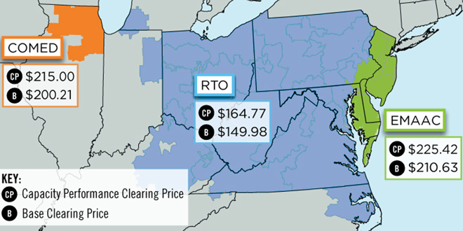 PJM's first capacity auction under its new no-excuses policy saw prices rise 37% to $164.77/MW-day in most of the RTO.
