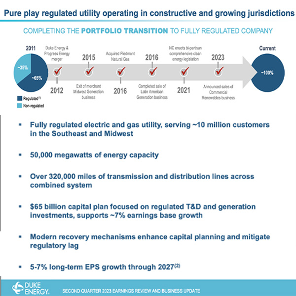 Duke Energy reported earnings of $1.25/share for the second quarter, and its CEO told analysts the company also came out ahead with state and federal legislation.