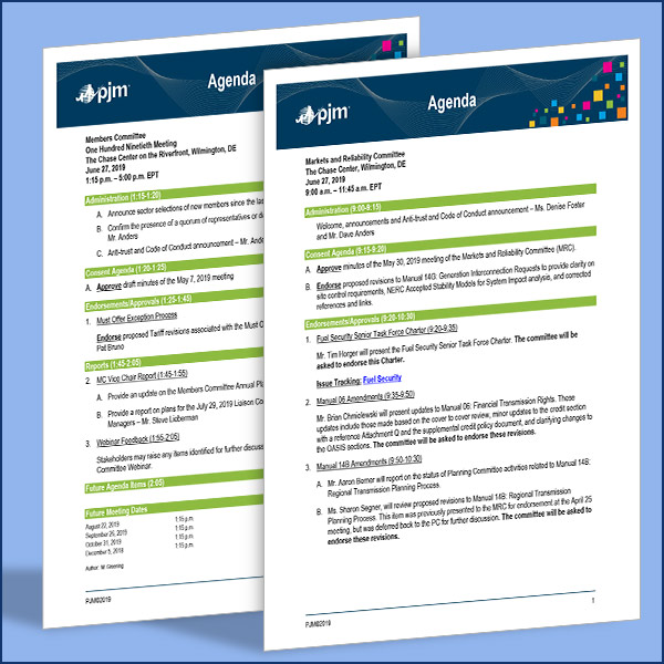A summary of the issues scheduled to be brought to a vote at the PJM Markets and Reliability and Members committees on June 27, 2019.