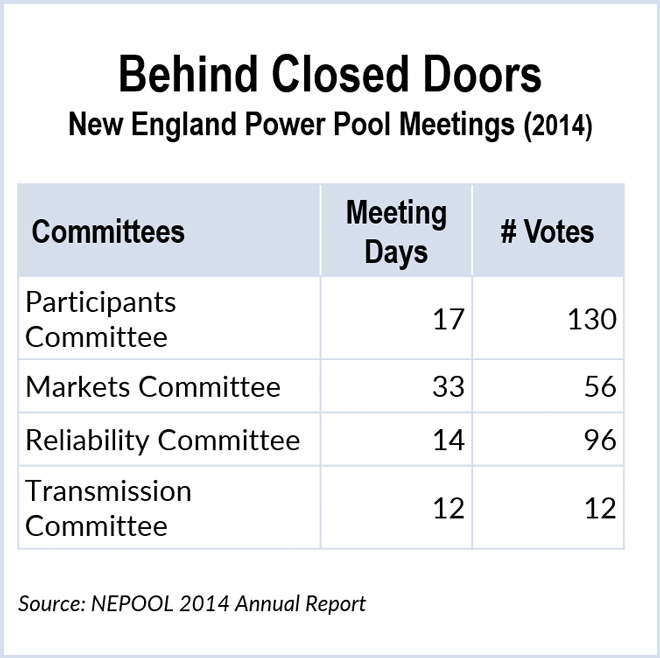 ISO-NE and the New England Power Pool (NEPOOL) bar the public and the press from virtually all of their stakeholder meetings.