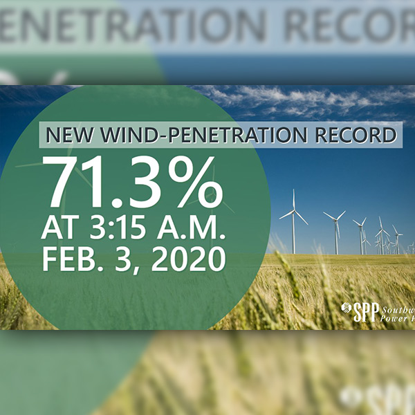 SPP set a new record for the amount of wind energy in its resource output mix when it recorded a penetration level of 71.3%.