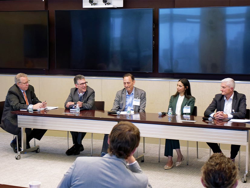 From left, William Hollaway of Gibson Dunn & Crutcher, Phil Toia of the New York Power Authority, Stuart Nachmias of Con Edison Transmission, Asha Gandhi of EnergyRe and Donald Jessome of Transmission Developers Inc. are shown at the Energy Bar Association...s 2023 Northeast Chapter Annual meeting June 14 in New York City. | © RTO Insider LLC