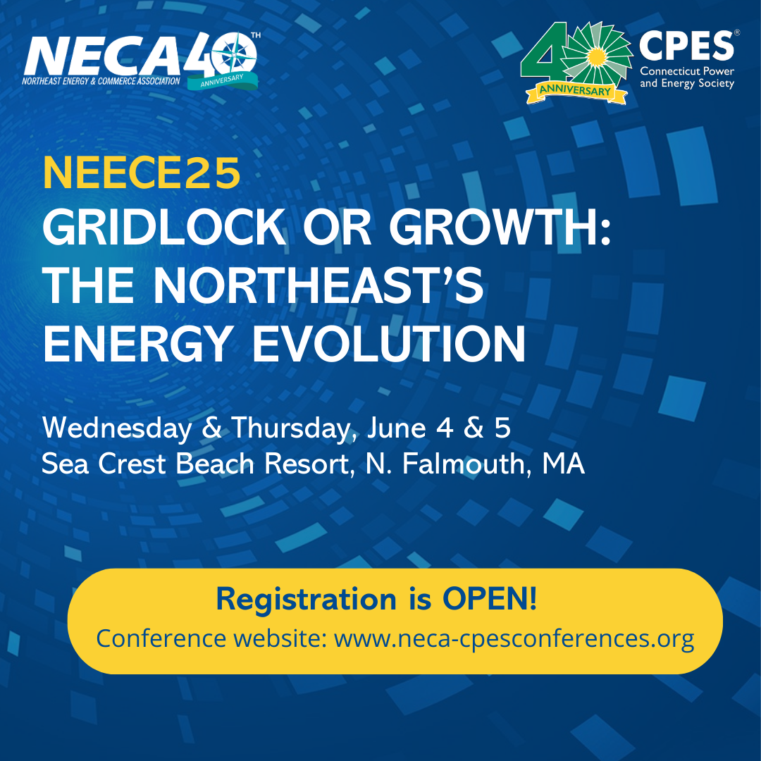 Join NECA & CPES at the 2025 New England Energy Conference & Exposition, where industry leaders, policymakers, and innovators will converge to explore the dynamic landscape of energy in the Northeast. This year’s theme, “Gridlock or Growth: The Northeast’s Energy Evolution,” will delve into the critical challenges and exciting opportunities facing the region’s energy sector.