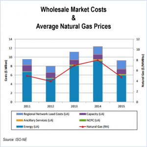 Prices dropped more than $22/MWh to $41, according to the 2015 Annual Markets Report by the Internal Market Monitor of ISO-NE.