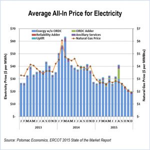 Cheap natural gas pushed ERCOT's energy costs and congestion revenue to record lows in 2015, the IMM reported in his state of the market report.