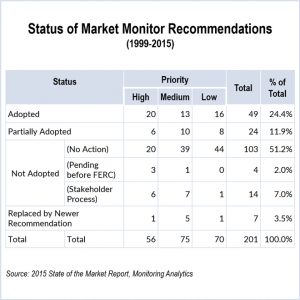 The Monitor reported that the PJM energy, capacity, regulation, synchronized reserve and FTR markets were all competitive in the 2015 State of the Market.