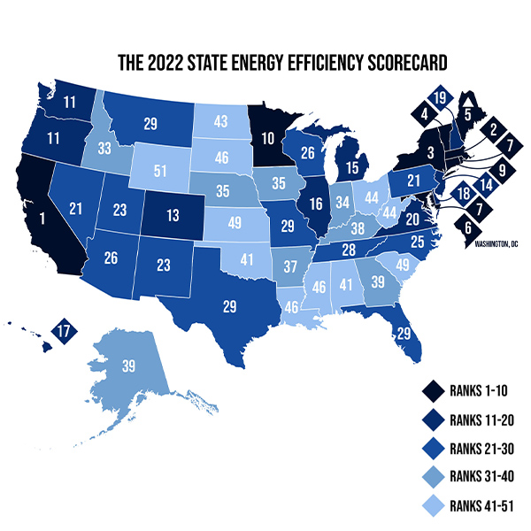 The 16th ACEEE state energy efficiency scorecard put California at the top of the rankings and Wyoming at the bottom.
