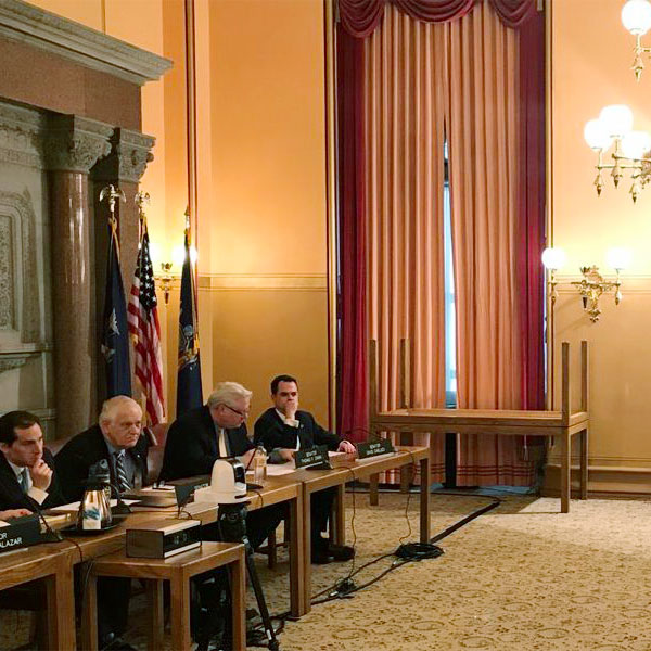 Nearly 40 people braved a snowstorm Tuesday to testify on a bill that aims to put some of New York’s ambitious decarbonization goals into the statute books.