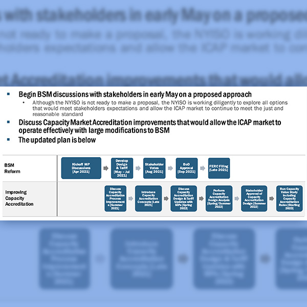 NYISO unveiled a plan and timeline for reforming its buyer-side mitigation rules by September 2021.