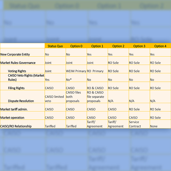 The group working to establish a single Western RTO heard summaries of five potential options for a new governing body that could be independent of CAISO.