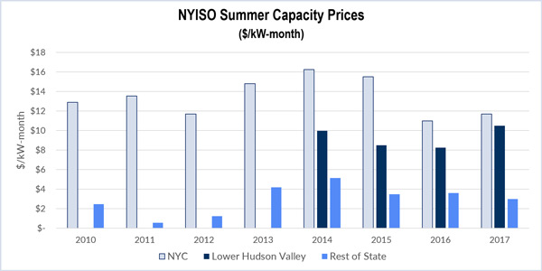 The NYISO summer 2017 capacity auction results surprised analysts last week with higher-than-expected prices for New York City and the Hudson Valley.