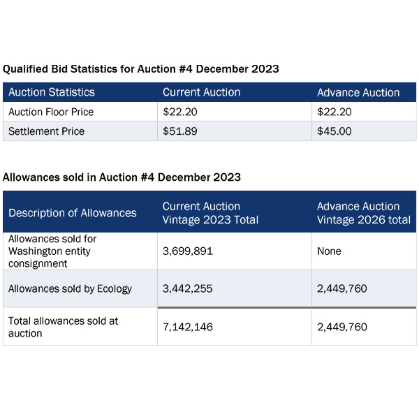 Washington state raised another $373.6 million in its last carbon emissions allowance auction for 2023, the Ecology Department reported.
