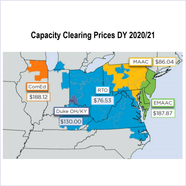 PJM’s first capacity auction requiring year-round availability per its Capacity Performance requirements saw prices drop by one-quarter in most of the RTO.
