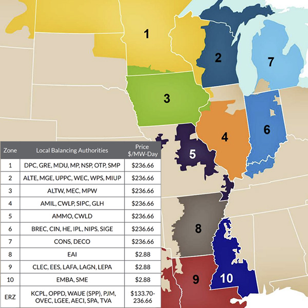 MISO’s 2022/23 capacity auction saw all its Midwest zones clearing at the nearly $240/MW-day cost of new entry, signaling a need for additional generation.