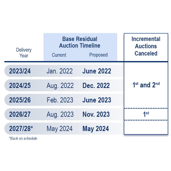 FERC approved PJM's revised schedule for the upcoming Base Residual Auctions, incremental auctions and the associated pre-auction deadlines.