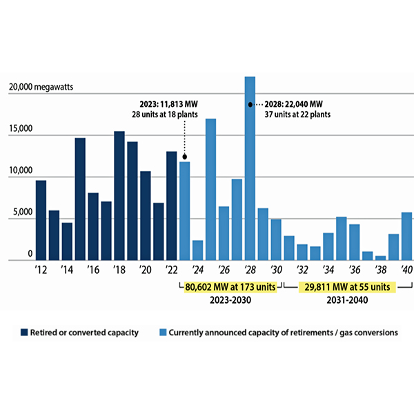 An energy market research group estimates 159 GW of coal-fired power production will be online in the U.S. in 2026, down half from a peak of 318 GW in 2011.