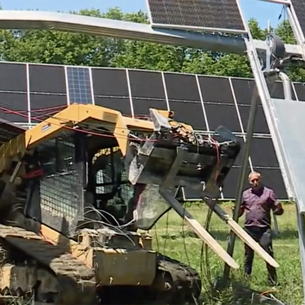 Maine police are looking for the people who plowed a construction vehicle through a nearly completed community solar farm, causing hundreds of thousands of dollars in damage.