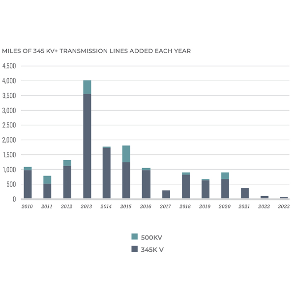 ACEG found the U.S. electricity industry added just 55 miles of new high-voltage transmission to the grid last year, despite estimates the system will need to expand rapidly in the near future.