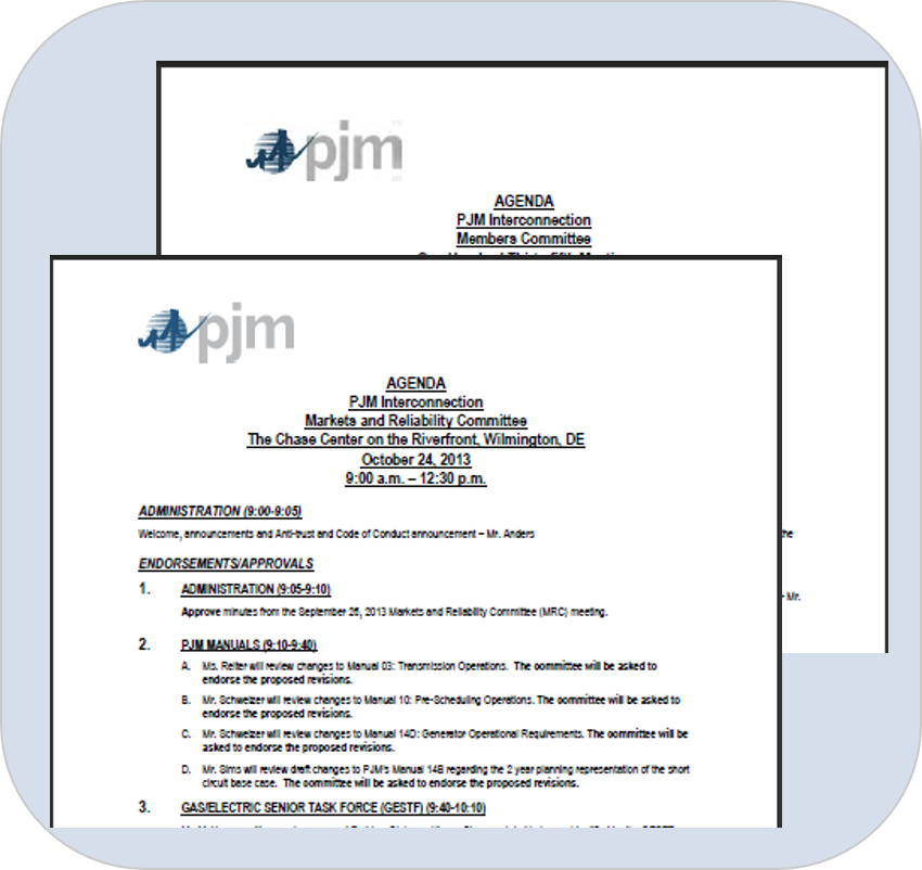 RTO Insider's monthly preview of the items on the PJM MC and MRC agendas along with a description/explanation and links to our previous coverage.