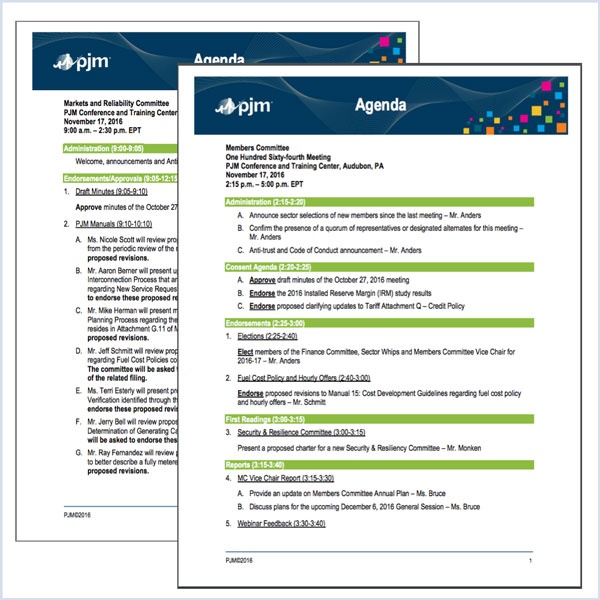 Our summary of the issues scheduled for votes at the PJM MRC and MC on 3/31/16. Each item is listed by agenda number, description and time of discussion.