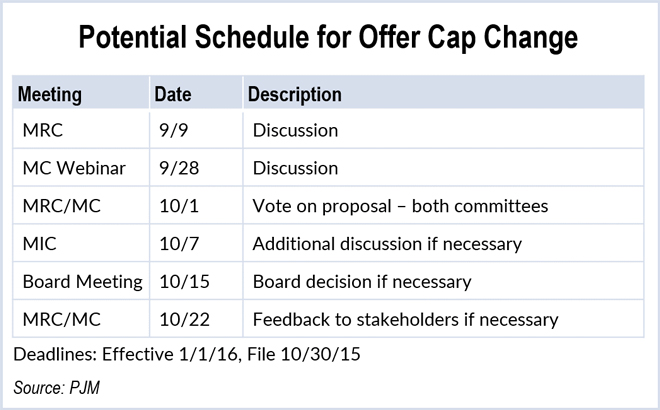 PJM stakeholders will continue to debate changing the $1,000/MWh energy offer cap at a special four-hour Markets and Reliability Committee meeting called for Sept. 9.